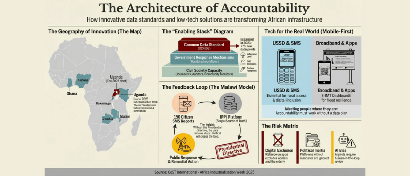 CoST Malawi’s six-week SMS pilot invited people to report infrastructure issues. Nearly 150 messages arrived; authorities responded on radio and took remedial action showing a loop from citizen input to visible fixes. This highlights how regional integration and innovative responses can support better infrastructure, which in turn supports the economy.